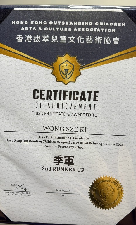 6D班王詩棋同學於端午節繪畫比賽2025和中學組季軍