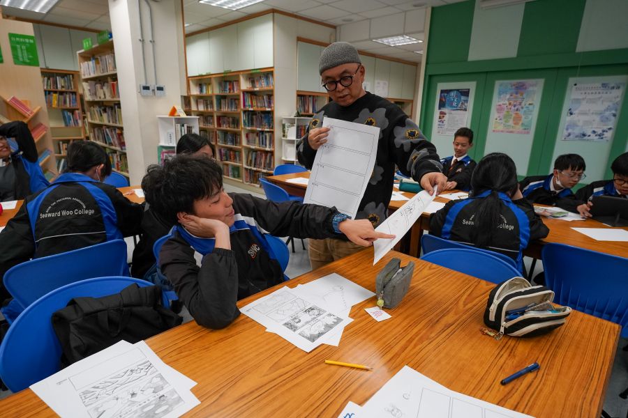 著名作家及漫畫家大泥親臨校園,與同學分享創作故事的靈感來源與技巧。同學們透過活動,學會以正向思維觀察生活、發掘故事主題,並運用文字與畫筆表達心中所想。