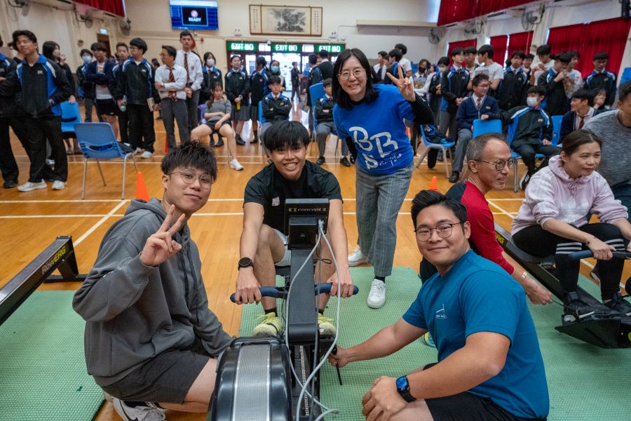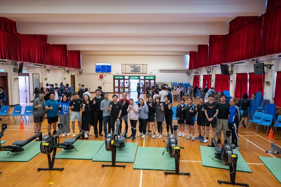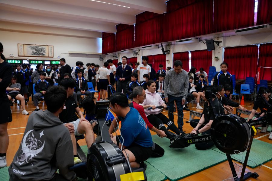 「室內划艇大挑戰」透過運動體驗和團隊合作,培養學生堅毅志向及正向心理素質。當天師生、家長及學生一同參與挑戰,在競技過程中展現出色的團隊協作與體育精神。