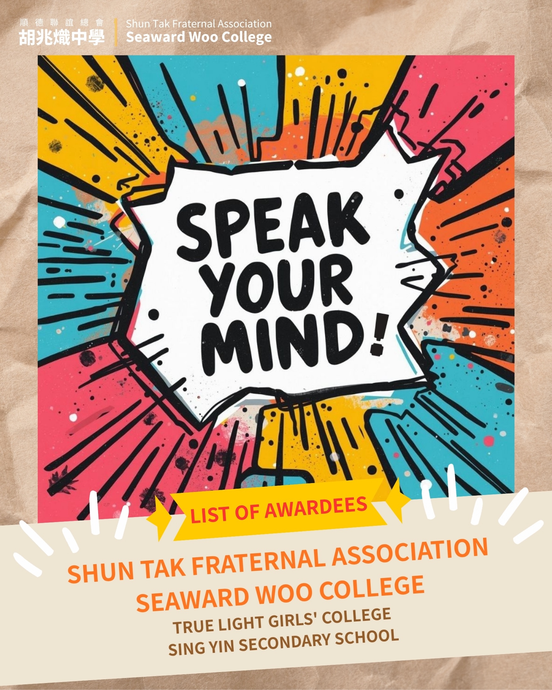 Our students took part in the Students Showcase Pilot Scheme – Speak Your Mind organised by the English Language Education Section of the Curriculum Development Institute, Education Bureau, and received the Notable Content Creator Award.
