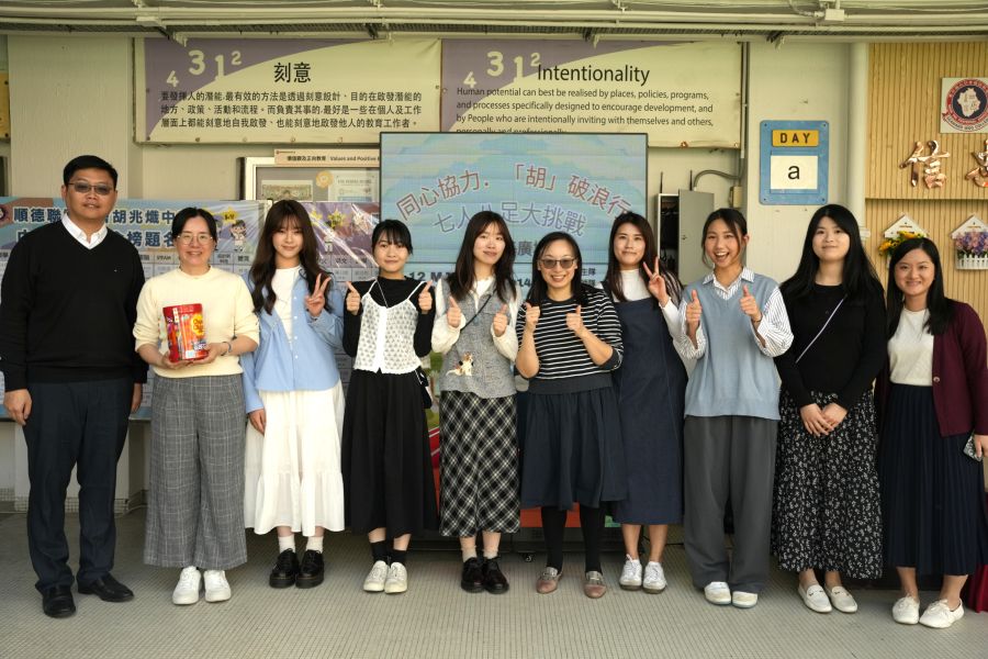 正向教育雙周期間,師生一同參與七人八足,大家相互配合,樂也融融。