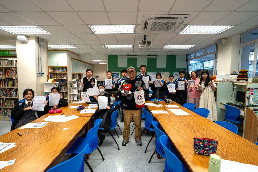 著名作家及漫畫家大泥親臨校園,與同學分享創作故事的靈感來源與技巧。同學們透過活動,學會以正向思維觀察生活、發掘故事主題,並運用文字與畫筆表達心中所想。