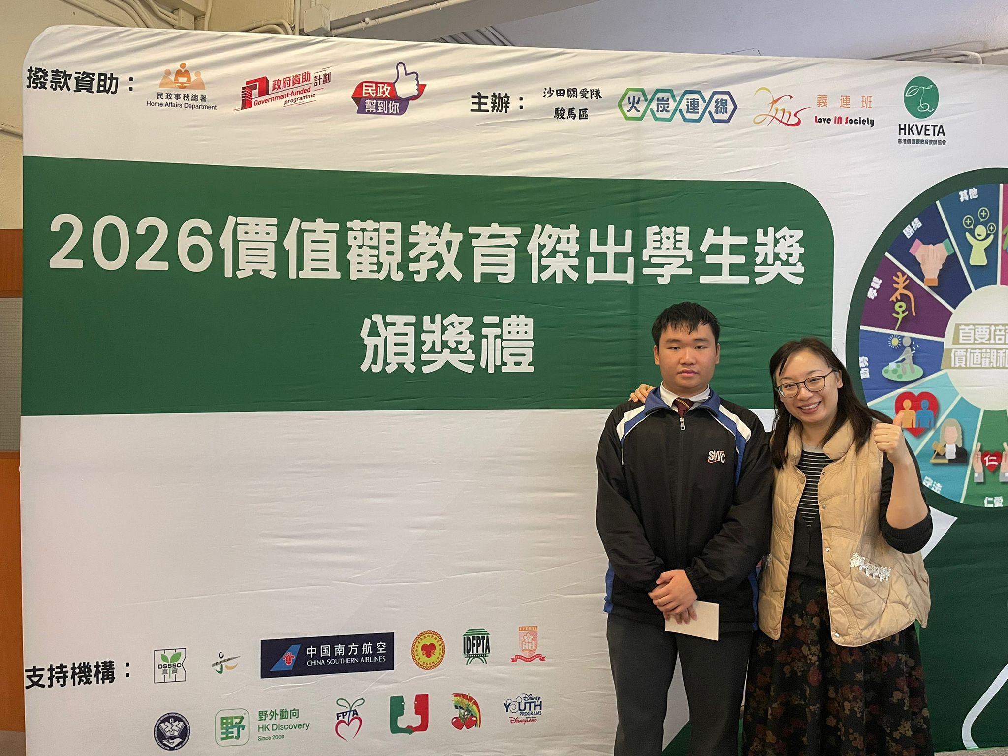-本校賴冠豪同學獲價值觀教育傑出學生獎。