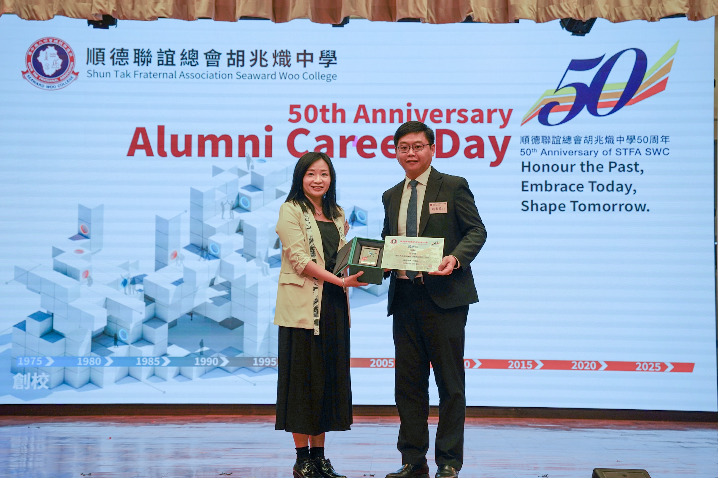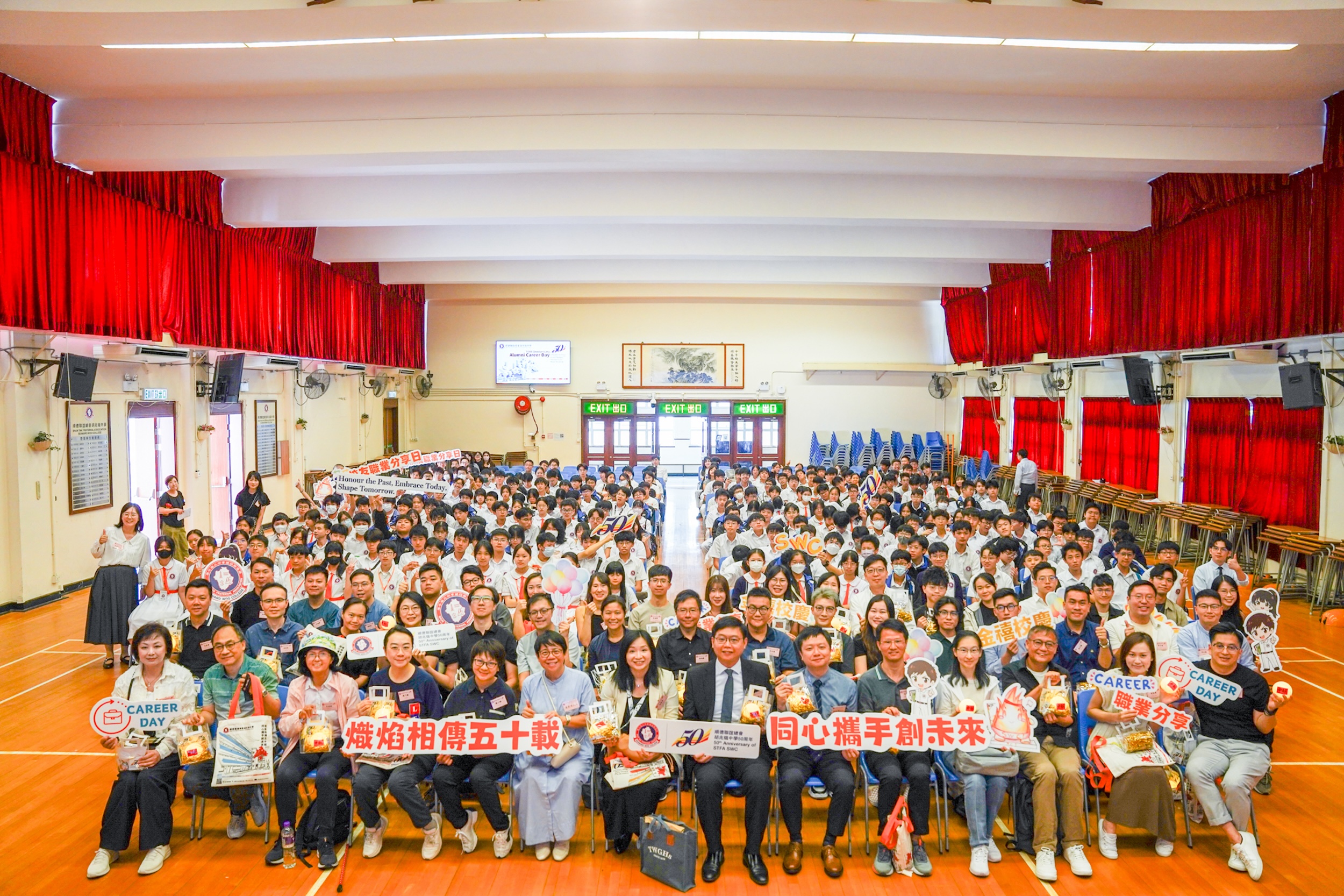 為慶祝本校成立五十周年,學校特舉辦「金禧校慶校友職業分享日」,邀請五十位來自不同專業界別的校友回到母校,與師弟師妹們分享他們的升學及工作歷程。